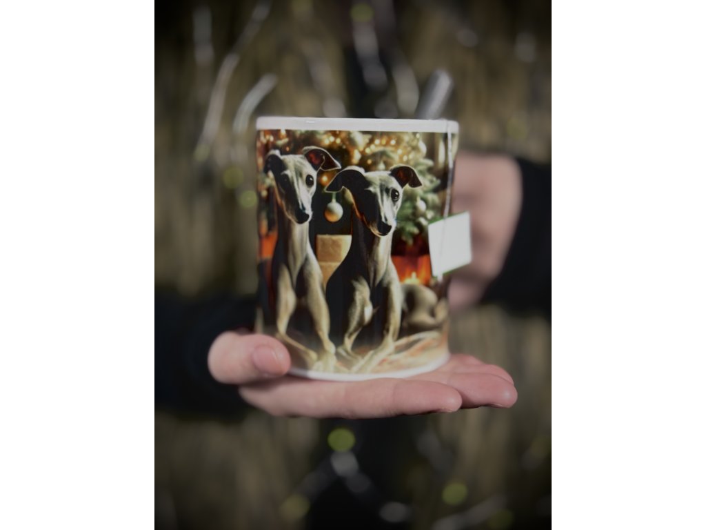 Hrneček s vánočním motivem italských chrtíků