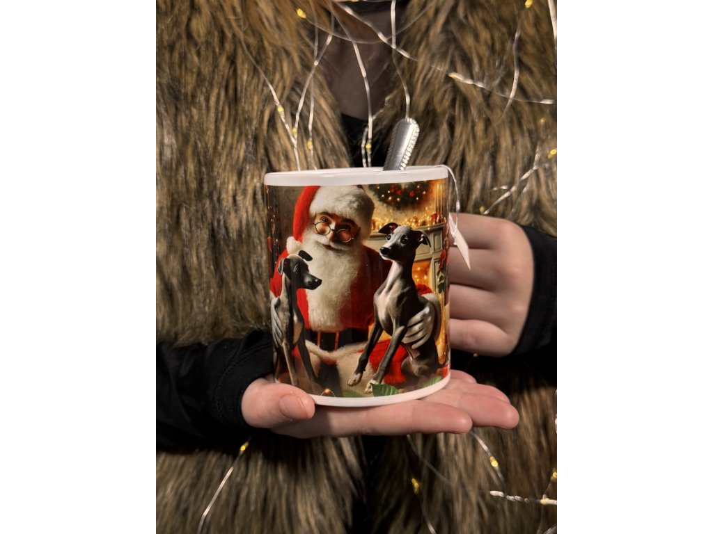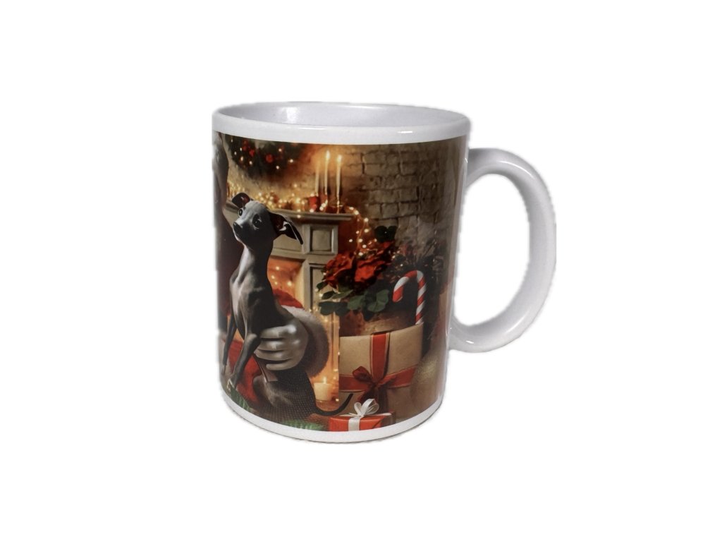 Tento krásný keramický hrnek o objemu 330 ml přináší vánoční atmosféru přímo do vašich rukou. S motivem roztomilých chrtíků obklopených vánoční výzdobou, dárky a slavnostními dekoracemi, je ideálním společníkem na zimní rána nebo chladné večery u horkého nápoje.