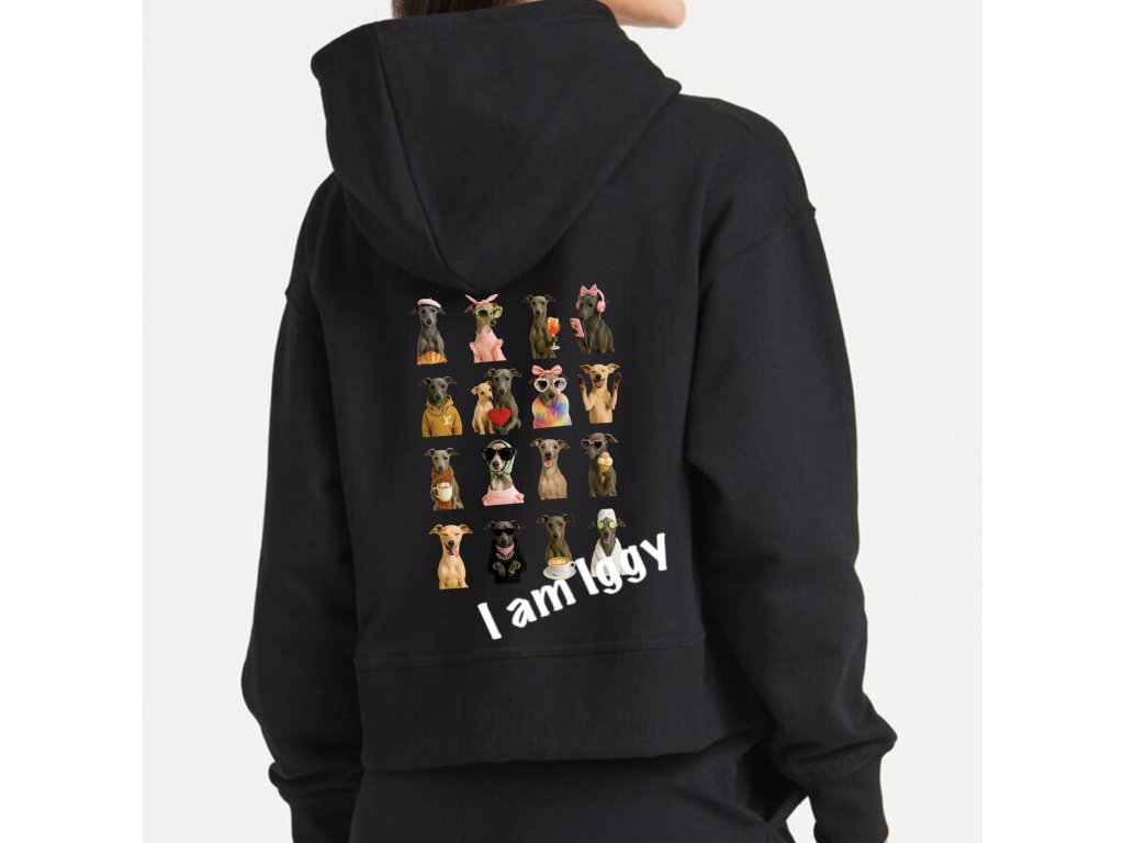 Vzadu celá parta italských chrtíků Iggy’s v roztomilých i stylových pózách a nápis „I am Iggy“, který spojuje všechny milovníky těchto elegantních psích duší.