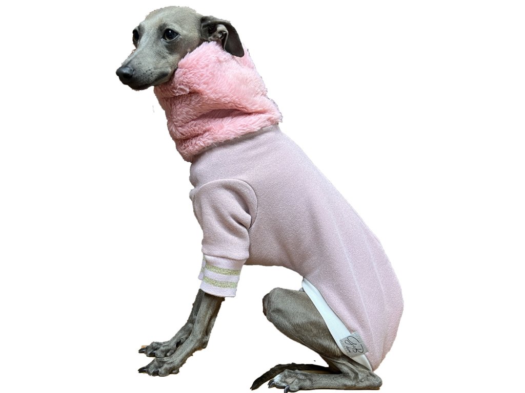 Starorůžový overal z rolákem z umělé kožešiny pro italského chrtíka